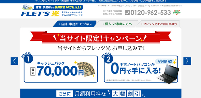 インターネット接続サービスなら、NTT東日本、NTT西日本が提供するフレッツ光 (ひかり)。店舗・事務所などの法人向け料金プランやひかり電話のご紹介しております。